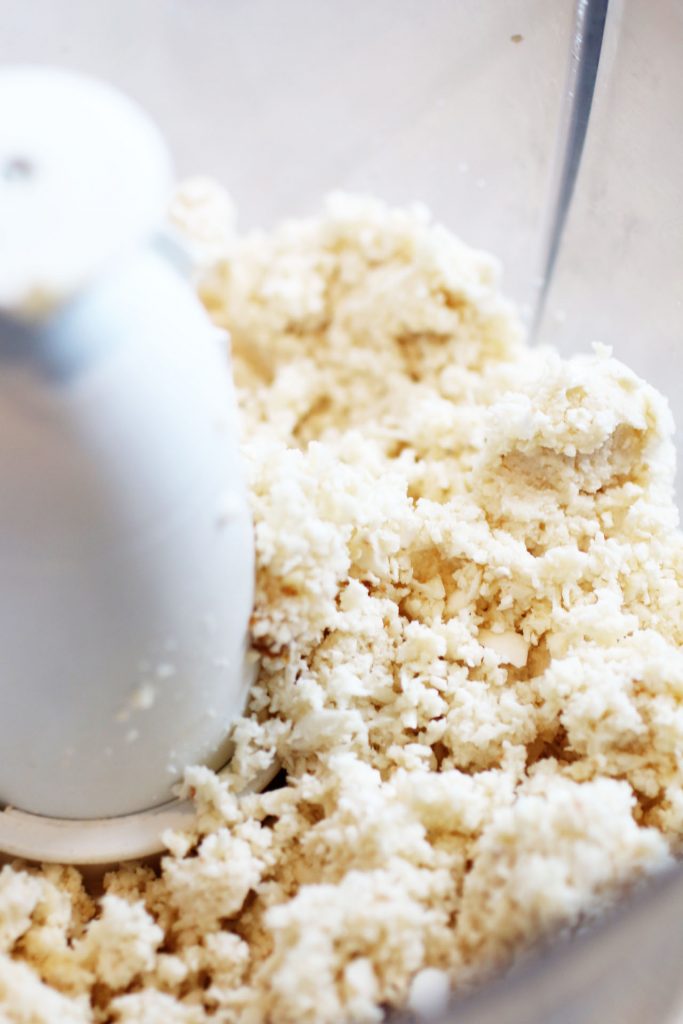 - Elimina la pellicina marrone dalle mandorle e tritale con l’aiuto di un robot da cucina. Aggiungi la stevia in polvere, la vaniglia, l’olio extravergine di cocco e la parte grassa del latte di cocco. Amalgama e riempi con questa crema la tortiera, versandola sopra la base. Rimetti nel frigorifero.