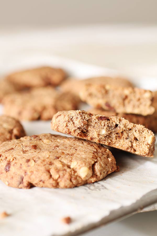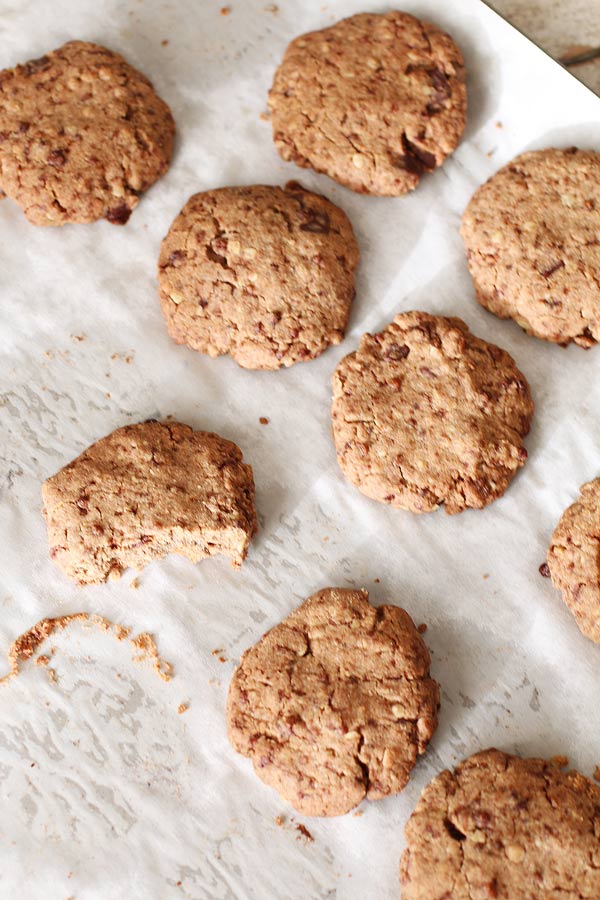 Per variare il nome delle mie ricette di Biscotti con Gocce di Cioccolato ho preso il nome dall’inglese, nel mio caso al posto delle gocce c’è del miglior cioccolato fondente e al posto della farina bianca c’è una miscela di farine: farina di cocco, farina di avena, farina di chufa, farina di mandorle.