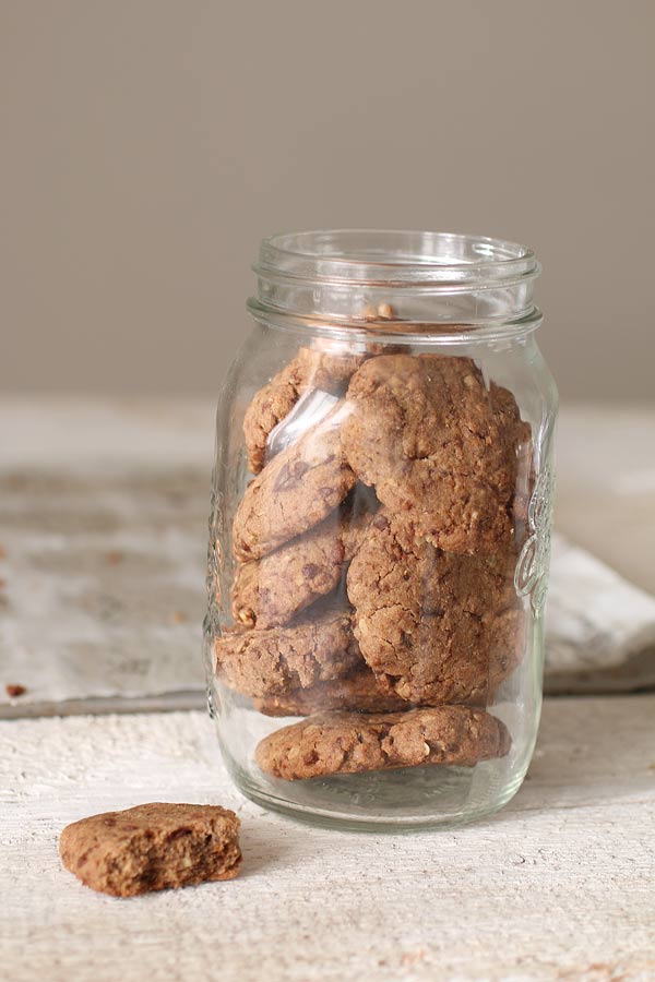 Troverai quindi la farina di grano saraceno, il cioccolato fondente e la combinazione di olio e ghee. Penso che prossimamente farò dei biscotti usando solo l’olio extravergine di oliva ma per ora gli esperimenti realizzati non hanno prodotto dei risultati così soddisfacenti da poter essere pubblicati.