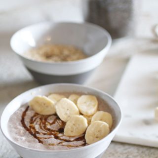 Il motivo per cui preferisco utilizzare questo mix di cereali con i fiocchi di avena è che contengono tante preziose fibre (apportate dall’avena e dalla frutta), una buona quantità di grassi buoni (presenti nei semi di chia e nel latte vegetale) e una quota di carboidrati (presenti nella banana). A proposito della scelta di questo frutto ci tengo a dirti che io ho testato la ricetta usando la banana per una preferenza in fattore di gusto e stagionalità, andando verso l’estate ti consiglierei di consumare più mirtilli, mirtilli rossi americani (che in Italia biologici si trovano solo surgelati) e proprio perché ora siamo in una fase di detox primaverile cerchiamo di diminuire il consumo di frutta zuccherina come le mele, le pere e i mandarini. La banana inoltre contiene tante fibre altamente digeribili e tanto potassio che facilita il processo di alcalinizzazione nel nostro corpo. Se prepari i fiocchi di avena la sera prima cerca di consumarli il giorno successivo o conservare la cremina che si forma in frigorifero per massimo due giorni. Ti consiglio inoltre di non riscaldare oltre i 40° C né il latte vegetale né i fiocchi di avena per non rischiare di far irrancidire gli oli naturalmente presenti nei semi di chia o in quelli di lino.