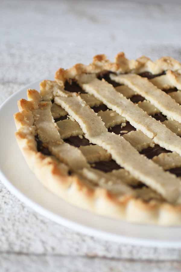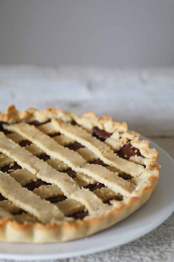 Altrimenti ignora quello che dice Luca: lui brontola, ma alla fine si è mangiato questa crostata con la crema alla nocciola per tre mattine di fila con un bel bicchiere di latte di mandorle. Glicemia a posto!