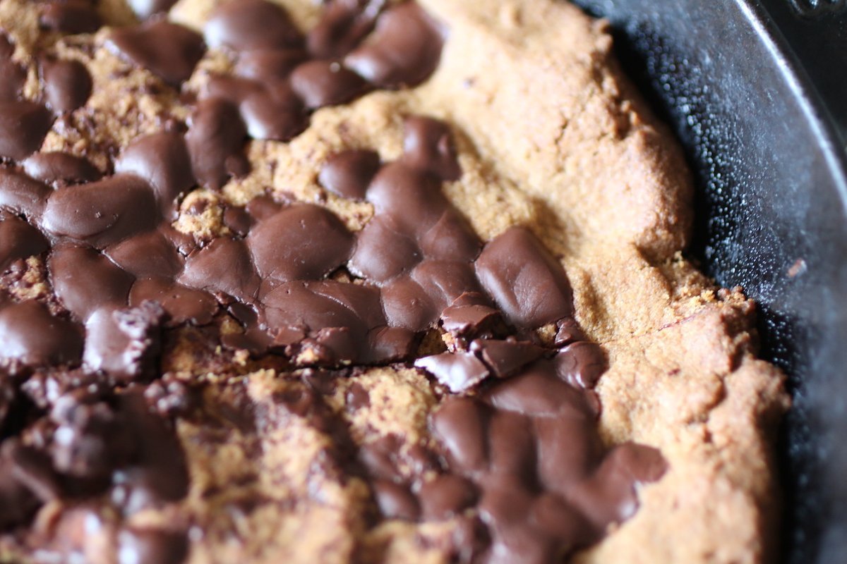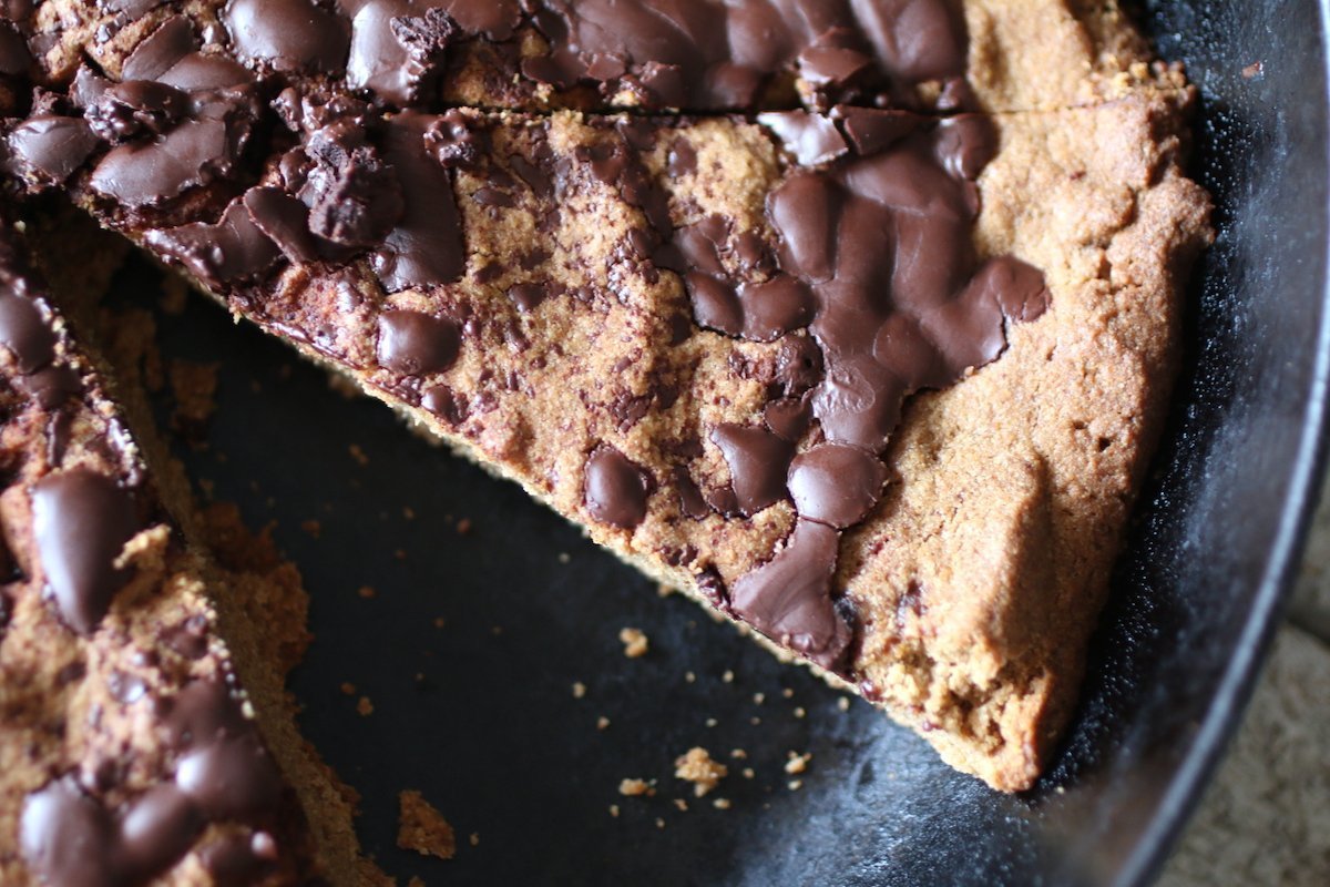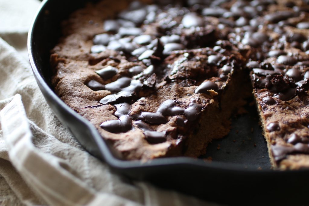 Per prepararlo nella padella, avrai bisogno di una bella padella in ghisa del diametro di circa 20cm o poco più. Il vantaggio è che non devi usare la carta da forno e nemmeno imburrare la padella: il biscotto si cuocerà e si staccherà perfettamente.