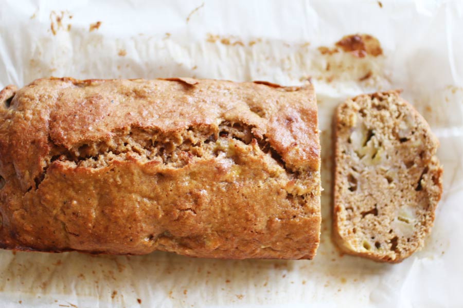 Ho preparato questo pane alle banane la prima volta che ho fatto da “babysitter”, da sola, per una settimana intera, a tre maschietti che avevano meno di dieci anni. Già all’epoca facevano un sacco di attività fisica (ma come si fa a sei anni ad avere un’agenda piena di impegni più di quella di un amministratore delegato di una multinazionale?). Naturalmente armata delle migliori intenzioni di non sgarrare con cose semplici e facili (che purtroppo spesso significa compro la pizza durante il tragitto tra scuola e all’allenamento di tennis), mi ero ritrovata non solo a dover riorganizzare la dispensa di mia sorella (con tanto di cose da mettere nei vasetti di vetro) ma anche di dover inventare ricette che i bambini avrebbero mangiato volentieri e che rispettasse questi obiettivi: se ne potesse preparare una ciotola in massimo 30 minuti, che contenesse solo ingredienti naturali e niente sapori strani. Ah già, e che si potesse mangiare al volo senza sporcarsi.