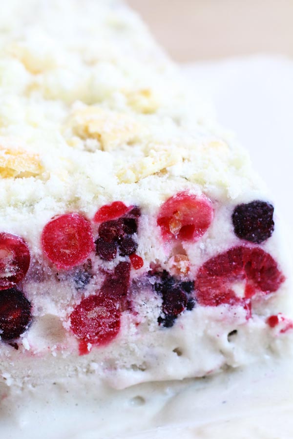 Prima ancora di cimentarmi con l’invenzione delle ricette senza zucchero di gelati vari, avrei dovuto pensare a realizzare alcune ricette di semifreddi. Ora che lo so, ti posso dire che un semifreddo casalingo ai frutti di bosco, è molto più semplice e veloce da realizzare rispetto al gelato. E il suo aspetto rustico e imperfetto è accettabile in tutte le occasioni, persino nelle cene più raffinate.