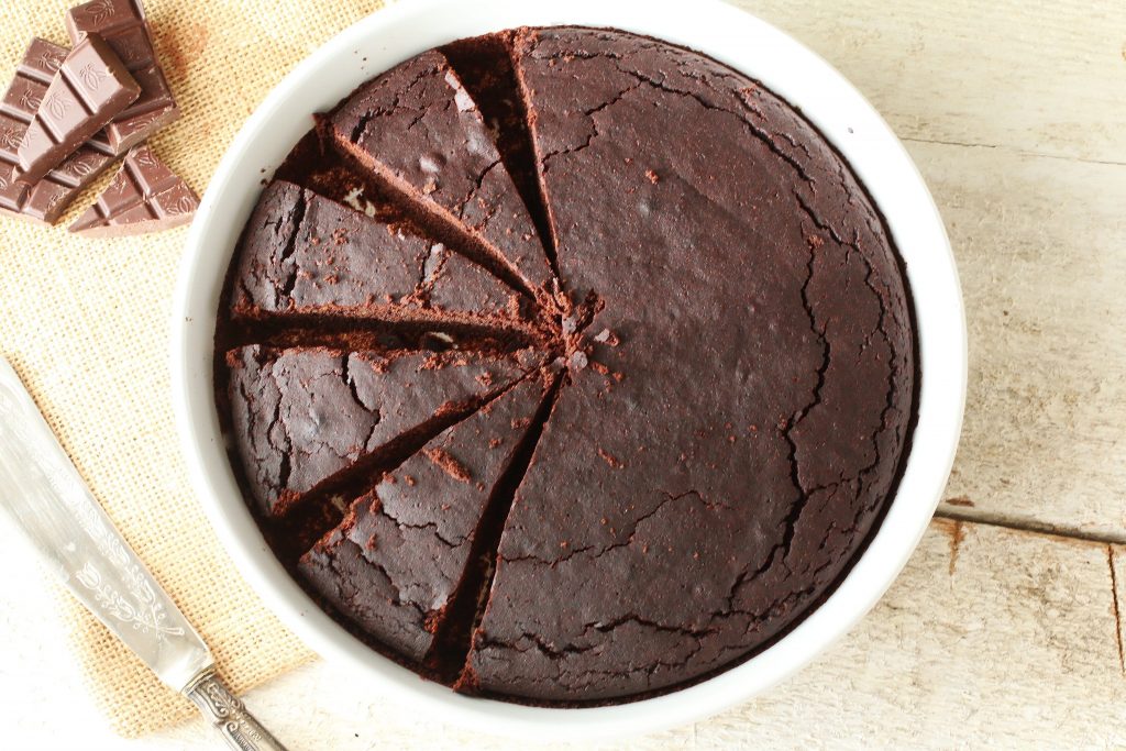 Questa è la miglior torta al cioccolato di sempre. Troverà un posto d’onore nel mio repertorio delle ricette di dolci da fare spesso, questo è sicuro. La chiameremo la Torta Morbida al Cioccolato senza Uova.