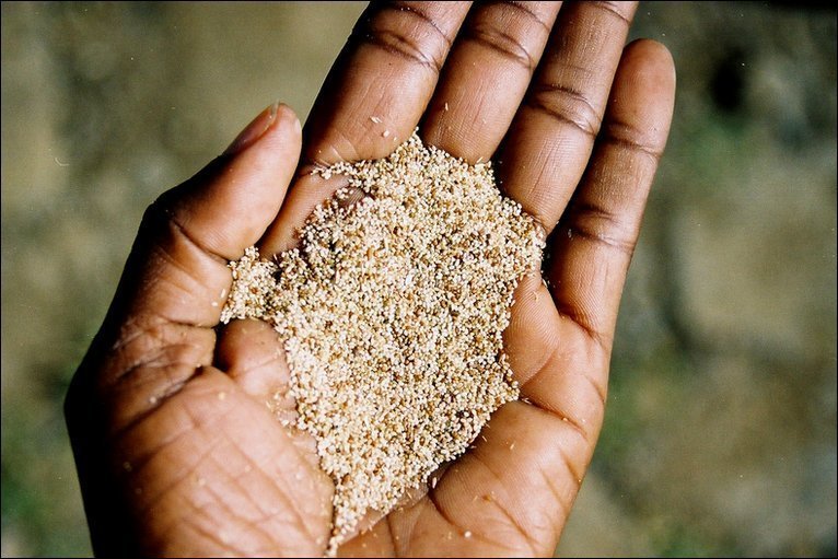 Dopo essermi documentata a lungo sia dai vari siti che anche dai distributori di tali prodotti, ho scoperto che il Teff (eragrostis tef) è un cereale originario dell’Africa nord-orientale e del sud-ovest dell’Arabia. La sua storia è antichissima e risale al lontano 4000 a.C., e la parola, ‘teff’, trae le sue origini dalla parola araba ‘tahf’, usata dai semiti nel Sud dell’Arabia, oppure dall’amarico ‘teffa’ che significa ‘perduto’, aggettivo dovuto alle dimensioni del suo piccolissimo chicco. Infatti erano proprio le minuscole dimensioni dei chicchi ad incuriosirmi più di tutto, effettivamente il chicco di Teff è il granello più piccolo al mondo, con un diametro che misura appena 0,8 mm, pensate occorrono circa 150 granelli di Teff per l’equivalente di un chicco di grano. Questa caratteristica lo rende un cereale molto redditizio, infatti, con pochi semi è possibile seminare un intero campo!